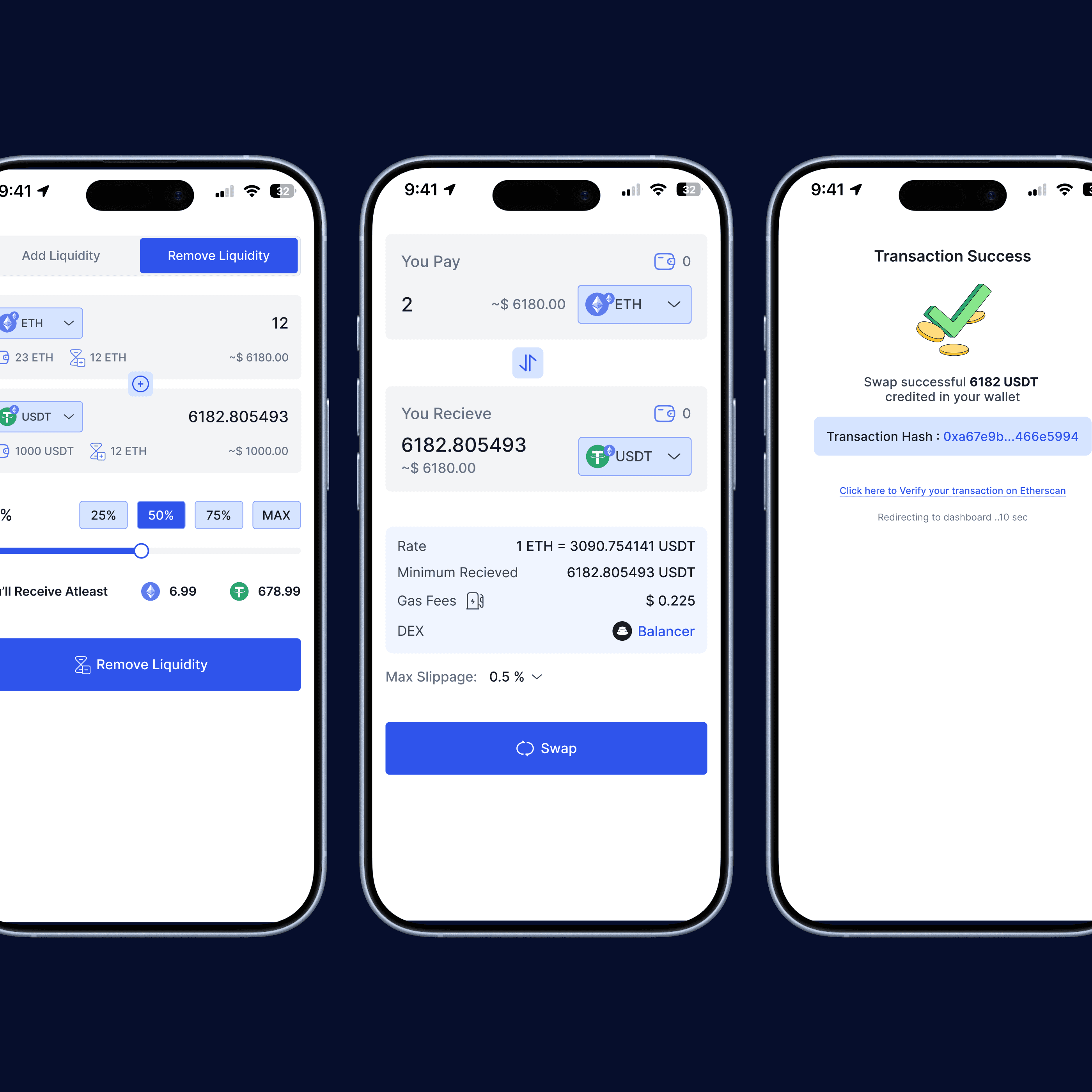 In my role as a Product Designer at Cumberland Labs, I worked with incubated Web3 companies such as Expand.Network and Integraate Innovations. My responsibilities included end-to-end product design for features like Swap, Bridge, Add/Remove Liquidity, and Wallet, along with managing the design system.