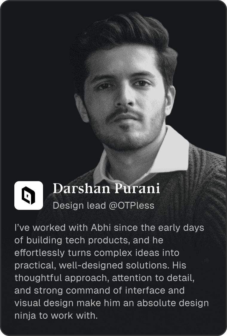 Hey, I’m Abhishek, a full-stack Product Designer with 3+ years of experience creating user-focused digital products across Web3, fintech, and gaming industries. I blend design thinking, technical know-how, and AI-powered workflows to move ideas from insight to impact.